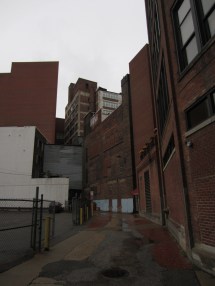 The few alleys in the Campus District of Downtown Cleveland are survivors amongst the superblock development of Cleveland State University (CSU). They connect the university area to Playhouse Square, providing access primarily to surface parking lots and loading areas. I would consider them to be heavily used, at least between the districts. The natural, brick pavers have been covered with asphalt, and present a challenge for pedestrians after a heavy rain.