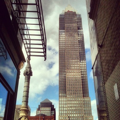 There are bound to be some treasures upon happenstance in Downtown Cleveland, but many have been eliminated through the development of entire city blocks. One such survivor among alleys is private corridor at Public Square, near the intersection of South Roadway and East Roadway. If anything, this downtown alley provides an untraditional viewshed of multi-generational archetypes of the great American city.