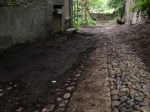 We do not know what the future holds for Peete Alley, once the most complete alley section of surviving, exposed cobblestone pavement in Cincinnati. Fortunately, the City of Cincinnati DOTE has begun investigating who might have been responsible for this destruction. DOTE has been well aware of our intervention to the space, given its inclusion in the Stairway & Alley Signage Project. Although not protected under historic district guidelines, the department has language in its Street Right-of-Way and Street Restoration Manual that holds all parties responsible for like replacement and restoration of a street surface, including brick and stone. Photos of the aftermath were submitted to a DOTE contact on July 6th. Spring in Our Steps hopes that its very through documentation of the previous condition of Peete Alley may be used to hold the irresponsible parties liable for damages. Although we never anticipated a restoration of the alley, the responsibilities that the department places upon those who conduct work in the public right-of-way could lead to a disingenuous restoration of Peete Alley. Someday.