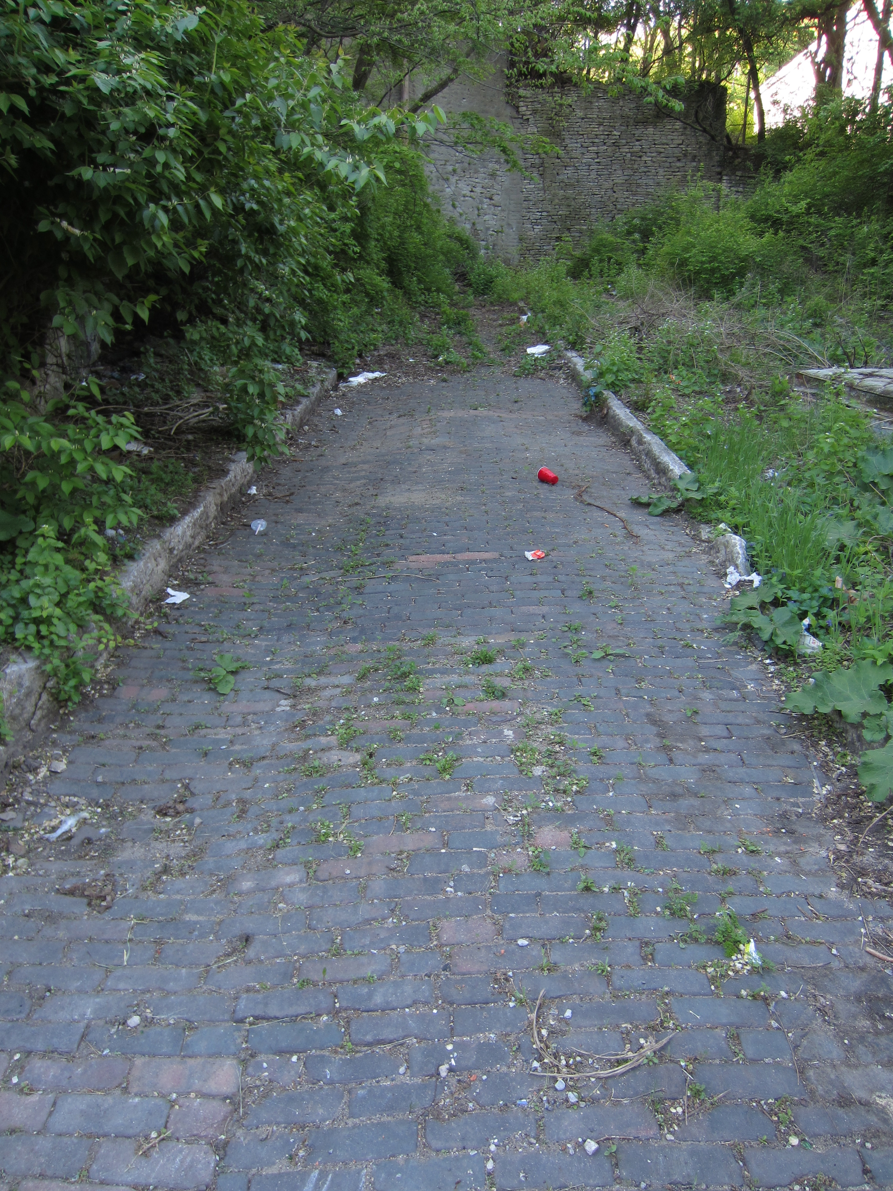 St. Joe Street is a side street that branches off Vine Street, in the Mount Auburn neighborhood of Cincinnati. While a one-block section is navigable by auto, between Vine and Loth Streets, a 10-foot right-of way extends southeast of Loth Street into a looming retaining wall. Maps show St. Joe Street bisecting the block to Rice Street, but the wall interrupts that corridor, forcing users to use the North Wendell Alley Steps, before continuing onward to Rice Street.